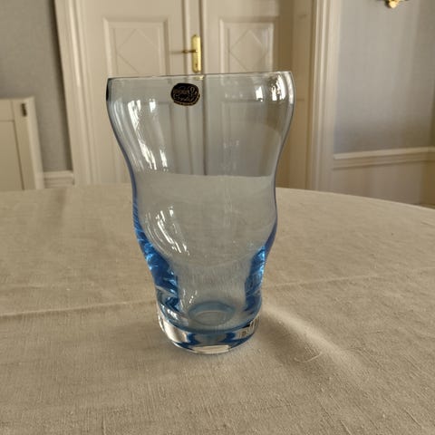 Vacker vas i glaserad keramik med handmålat blått droppmönster. Tidlös och dekorativ, passar lika fint med snittblommor som på egen hand som inredningsdetalj. Enkel och elegant och ändå lite lekfull. Skandinavisk känsla.