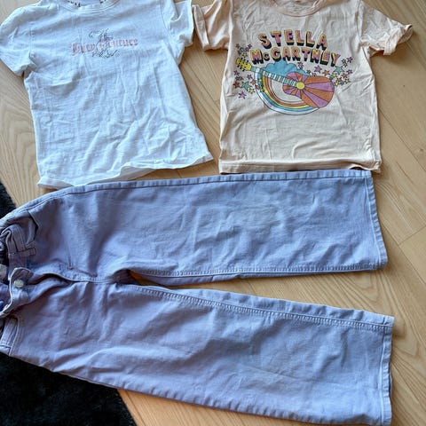 Stort klädpaket för tjejer med stl 146/152, bl.a en tröja från Tommy Hilfiger och rosa leggings från Benetton