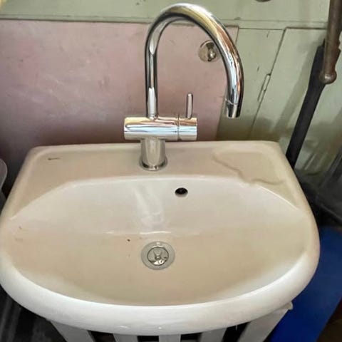 Blandare och tvättställ bortskänkes. Helt men lite färgfläckar som går bort enkelt med en tvätt.