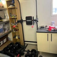 Multimaskin för chins, triceps och bröst inklusive 4*25kg+ 2*10kg samt 2*5kg+ lång stång 20 kg! Hämtas på plats. Monteras ner av köparen.