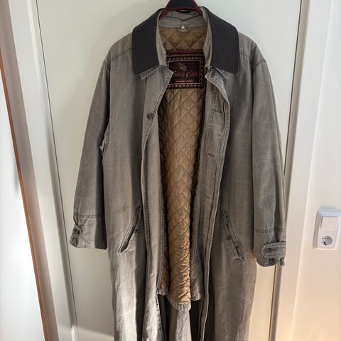 Helt ny trenchcoat inköpt på NK Göteborg, längd 100 cm från nacke till fåll. Storlek 52-54, passar herrar 180-188 cm. Nypris 8000kr.
