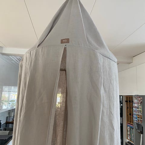 Grå sänghimmel i bomull, varit i rök och djurfri miljö