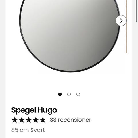 Ellos rund spegel med enkel och stilren design. Spegeln har en tunn ram och passar i exempelvis hall, sovrum eller vardagsrum. Kan användas både som praktisk spegel och som inredningsdetalj på väggen. Säljer då dom inte används längre.