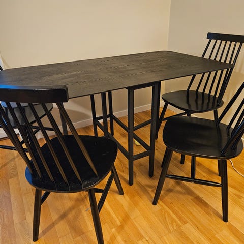 Klaff bord i vitt med lådor . Se foton ovanför. Köpt på IKEA.