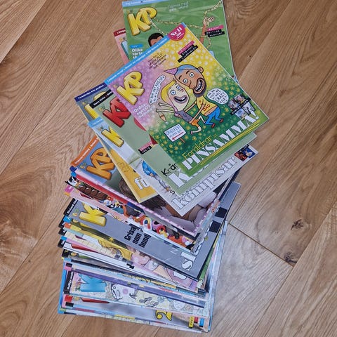 KP Kamratposten tidningar i ett blandat parti med flera olika nummer. Magasinen är rikt illustrerade och vänder sig till barn och unga med innehåll som serier, reportage, fakta och pyssel. Lämpliga för läsning, samling eller som material i skola och fritidsverksamhet. Jag har ungefär 32 tidningar. Från år 2020 nummer 15 till 2020 numemr 19-20, 2021 nummer 1 till 16 (12 finns ej), 2023 nummer 1 till 19-20 ( nummer 10, 13, 14, 15, 16, 17 finns ej) 2024 nummer 1 till 8 (2, 7 finns ej). Kan diskutera pris. Kan postas, köparen står för frakt.