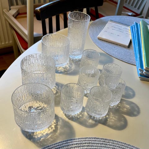 12 st ölglas, 3 st dessertskålar och 6 st snapsglas.