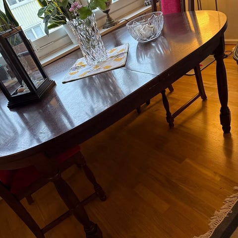 Vackert äldre bord med fina svarvade ben och detaljer.