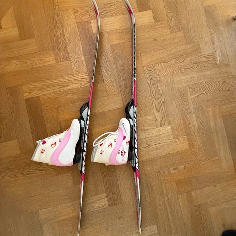 Säljer ett perfekt startkit för de små som vill testa på och ha kul med längdskidåkning. Skidorna har modern bindning från Rottefella som passar alla nya pjäxor.