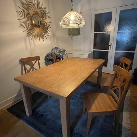 Användbar IKEA Matbord med förvaring + 4 stolar