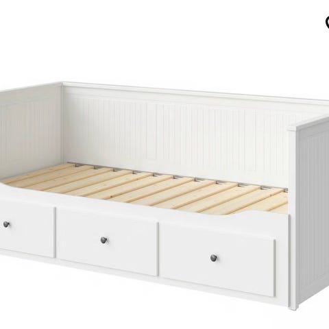En vit hemnes dagbädd i gott skick 1700 kr, saknas en träplanka men påverkar inte funktion. Se bild.