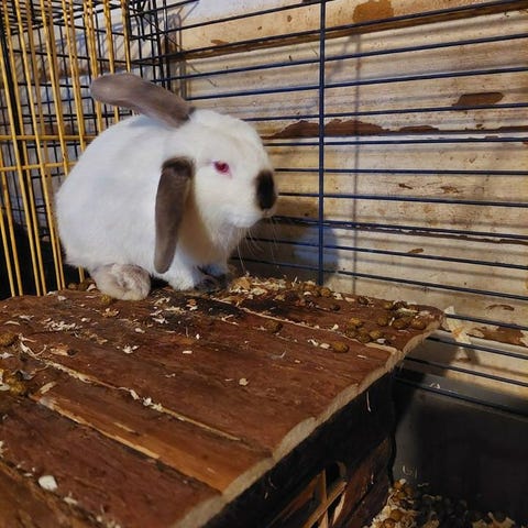 Blandraskanin, där pappan är vit wiener och mamman blandras med mest nzr. Föddes 14/9 2025.