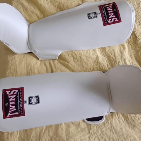 Twins Special benskydd i svart färg. Benskydden är avsedda för kampsportsträning och täckar både smalben och fot. Justerbara remmar baktill för att kunna anpassa passformen runt benet. Passar för användning vid exempelvis thaiboxning, kickboxning eller annan kontaktidrott där smalben och fötter behöver skydd.