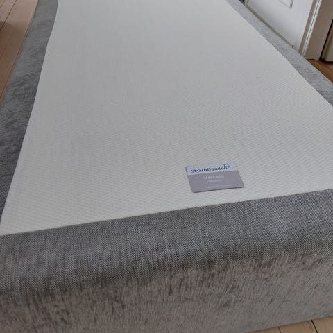 Stor sänggavel blå sammet, behöver ny bäddmadrass.