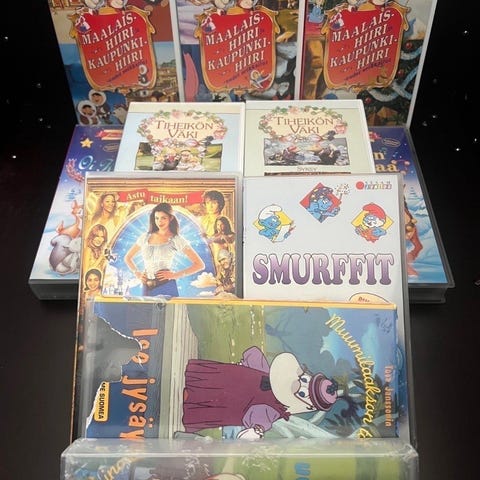 Säljer nu ett fint paket med de klassiska Mumin-filmerna på VHS. Det här är den älskade serien från 90-talet baserad på Tove Janssons berättelser, med svenskt tal och Benny Törnroos välkända signaturmelodi. Perfekt för samlaren eller för att visa barnen riktig nostalgi!