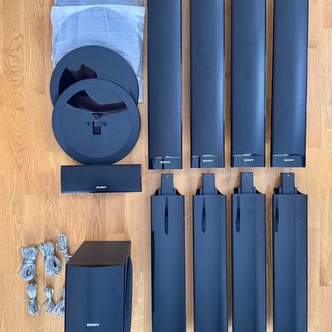 Anslutningar: HDMI (ARC/eARC) för TV, optisk, AUX, subwoofer-utgång.