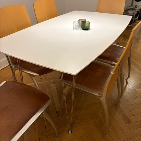 Vitt matbord med svarta ben i storlek som inte finns i sortimentet längre.