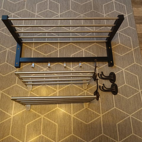 YOUDENOVA Vikbar klädtorkställning väggmonterad klädstång infällbar handdukshållare badrum handdukshängare kläder torkställning inomhus vikbar stark metall