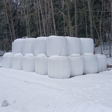 Hö rundbalar i plastförpackning