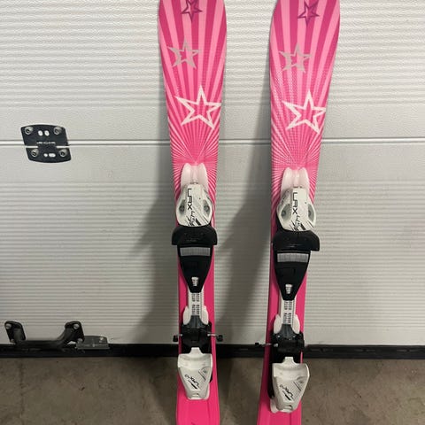 Elan barnskidor / slalomskidor med tillhörande pjäxor. Skidorna har justerbara bindningar. Något kortare skidor, vilket är lättare för nybörjare.