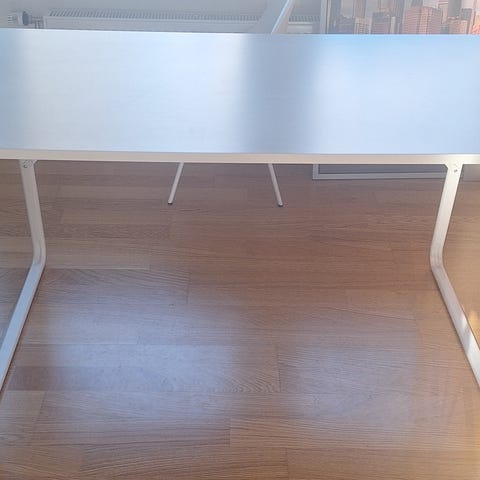 LINNMON bordsskiva 120 x 60 cm, GALANT sladdgömma, ben rostfritt stål 70 cm.