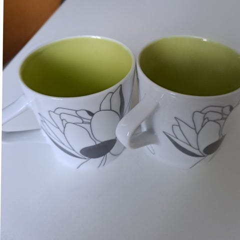 2 st vackert mönstrade kaffemuggar. Inhandlade från Ica Home .