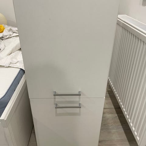 Vita högblanka med 3 skåpluckor (1 med glas), 2 likadana skåpbsom är separerade men kan sättas ihop. 500kr/st