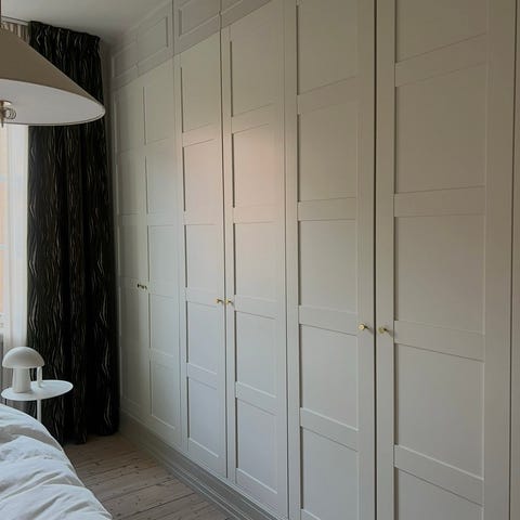 Mässingsknoppar från Sekelskifte. Belysning Ikea.