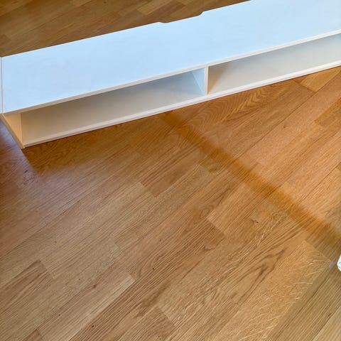 Vit sängförvaring / nattduksbord från IKEA, modell Fredvang. Praktisk kombinerad med avlastning och förvaring under sängen.
