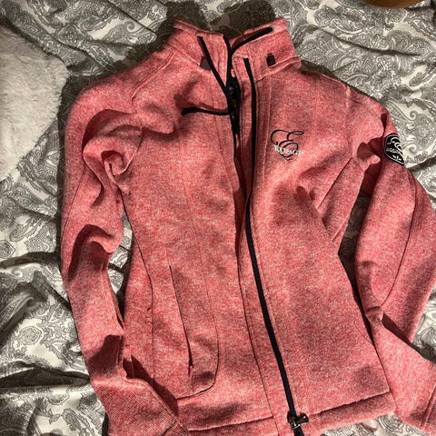 JH Collection jacka i marinblå färg i storlek 36. Jackan har dragkedja framtill och hög krage. Partier med quiltad struktur ger ett mer tekniskt utseende och kan ge viss extra värme över bröst och rygg. Modellen är figurnära och lämpar sig exempelvis för stall- eller fritidsbruk. Materialet ser ut att vara ett syntetiskt tyg med inslag av stretch, vilket ger rörelsefrihet vid aktivitet.