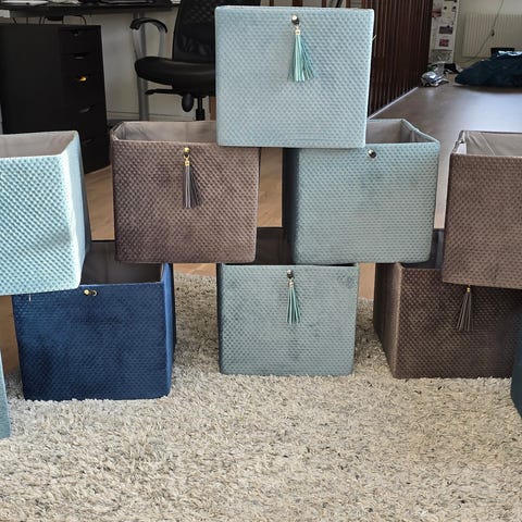 IKEA Kallax hylla med flera fack vit med rosa lådor