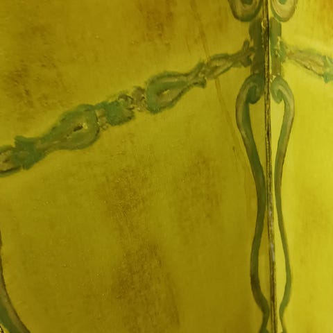 Förvarat den hopvikt, därav att viklinjer syns på bilden, de är enbart från förvaring och försvinner vid upphängning.