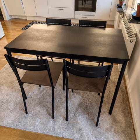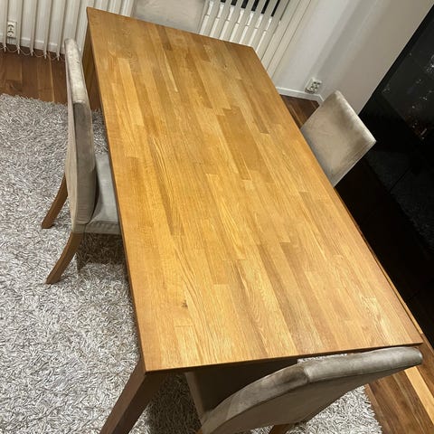 Matbord samt 4st tillhörande stolar säljes då nytt större är inköpt. Sparsamt använt, som ny.