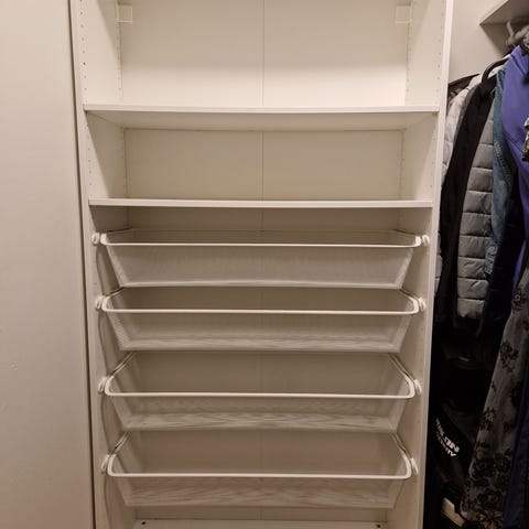 Ikea Algot hyllsystem. Perfekt förvaring i en walk in closet eller i hallen. Säljes nedmonterat