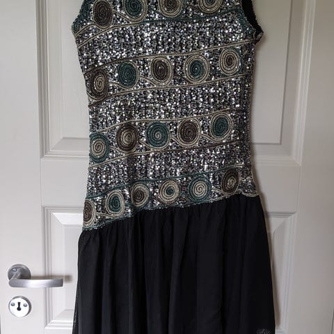 Glitterklänning i rött och svart storlek S