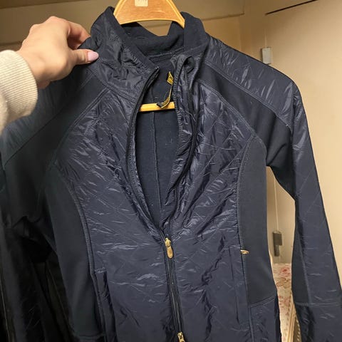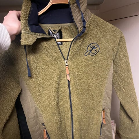Equipage jacka i rosa melerad färg. Jackan har hel dragkedja framtill och hög krage. Märkeslogga finns på bröstet och ärmen. Passar till vardag eller ridning. Storlek framgår av lappen på insidan (se bild). Materialet är ett mjukt, stickat tyg med lätt stretchkänsla.