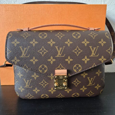 Louis Vuitton handväska för kvinna i läder med klassiskt brunt monogrammönster. Väskan har ett bärhandtag upptill samt avtagbar och justerbar axelrem för användning som axel- eller crossbodyväska. Framsidan har ett metallspänne med låsdetalj och baksidan har en yttre dragkedjeficka. Invändigt finns flera fack för organisering av innehåll. Passar för vardagsbruk och till förvaring av personliga tillhörigheter som plånbok, mobil och småsaker.