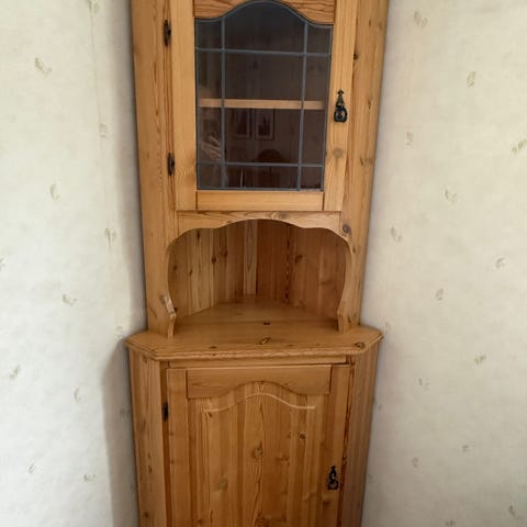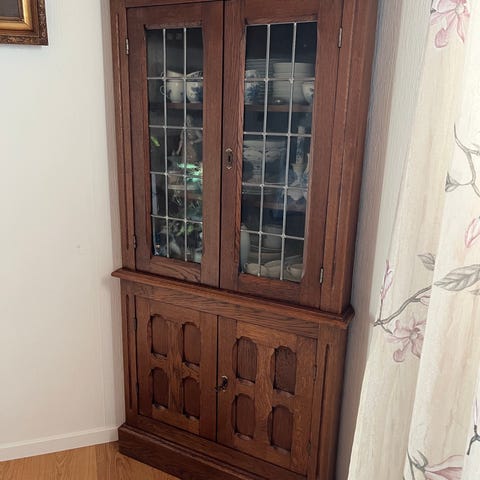 Hemmamålad hörnskåp m bubblor i glaset och belysning. Hittar inte nyckeln:(