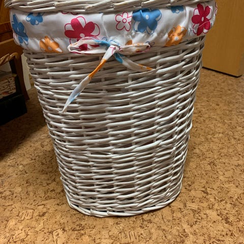 4st IKEA förvaringslåda med lock i textil med mönstrat tyg i ljusa beige toner. Lådan har lock i enfärgad textil och handtag på sidorna för enklare hantering. Passar för förvaring av kläder, leksaker eller andra mindre saker i garderob, hylla eller på golv.