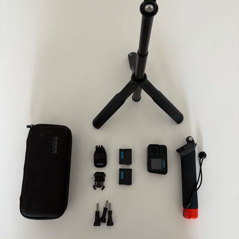 Tillbehör till GoPro. Allt så gott som oanvänt. Tre av batterierna är sprillans nya.
