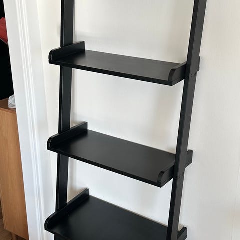 Passar för förvaring av böcker, dekoration eller mindre föremål i vardagsrum, sovrum eller hall. Smal modell som lutas mot vägg eller i ett hörn för att utnyttja ytan effektivt.
