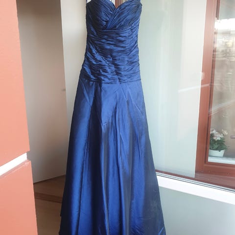 Saljer en otroligt vacker och elegant balklänning i en djup petrol/blågrön nyans med lyxig satinfinish. Klänningen är använd endast en găng och är i mycket fint skick.