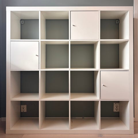 IKEA väggskåp/hyllor i vitt utförande, totalt 9 st varav 7 st syns på bild (3 st med dörrar, 2 st dubbla och 2 st enkla). 2 st enkla är ej uppsatta.