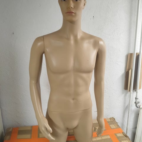 Transparent skyltdocka i plast. Helkroppsmodell i genomskinligt material, lämplig för visning av kläder och accessoarer i butik, showroom eller utställning. Fristående docka i vuxenstorlek med markerad överkropp, armar och ben för tydlig exponering av plagg.
