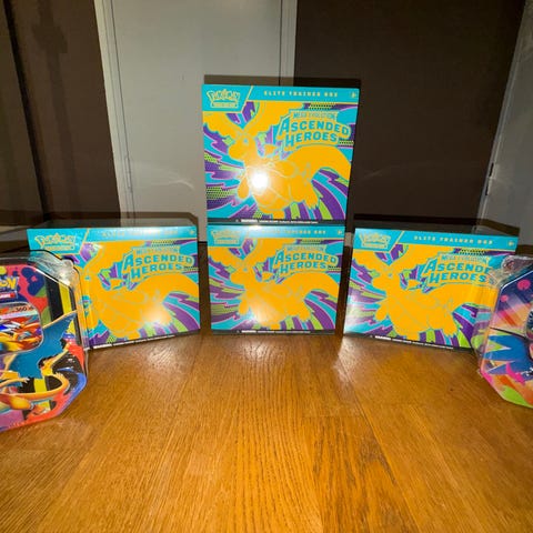 Säljer en box med 10 Ascended Heroes tins. Oöppnad och förseglad, dvs helt nytt.
