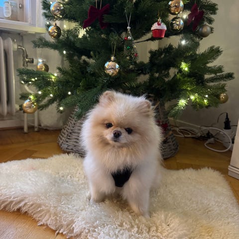 Han är en Pomeranian, hane, 1 år gammal.