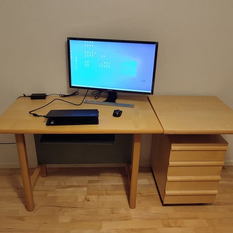 Skrivebord + förlängning + låda på hjul (självhämtning)