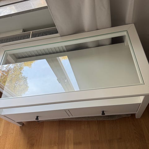 Säljer sparsamt använt soffbord Liatorp från IKEA.
