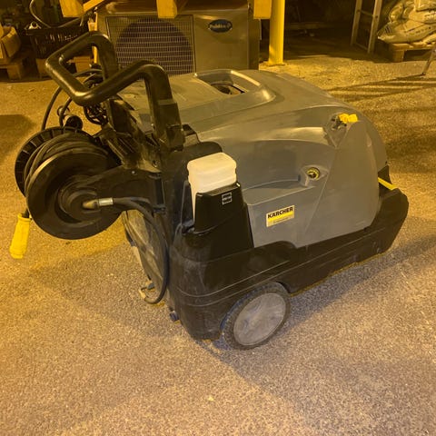 Kärcher HDS 8/17-4 M högtryckstvätt för kommersiellt bruk. Modellen är en hetvattentvätt med integrerad slangvinda och hjul för enklare förflyttning. Utrustad med reglage för temperatur och tryck på framsidan. Avsedd för rengöring av fordon, maskiner, golv och andra ytor där högtryckstvätt med varmvatten behövs i professionella miljöer som verkstad, lantbruk eller industri.