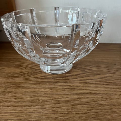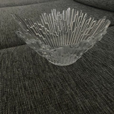 En glasskål som heter Revontulet av Tauno Wirkkala för Humppila. Den har en diameter mellan 21-23 c, höjden 12-13 cm.