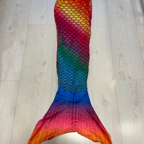 This is a Mermaid Tail with a Fin and full Bikini for Hobby Mermaid swimming. Evreything is size M: Body size145-165 cm, 45-65 kg